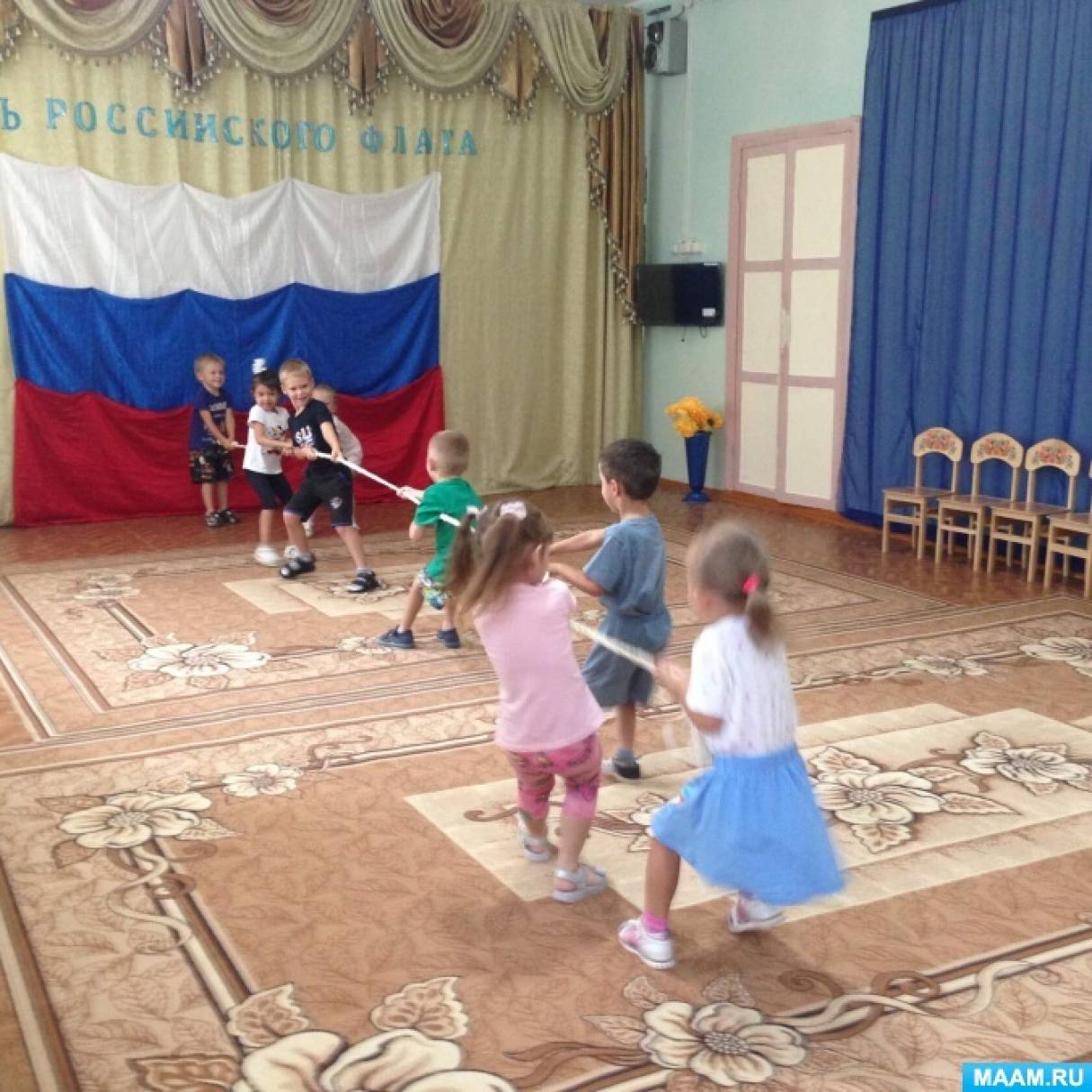 Можно сформировать из детей 2 команды по пять человек в каждой. Воспитывать уважительное отношение к государственному. Сценарий массового мероприятия посвященного государственному празднику День Флага России.